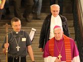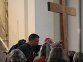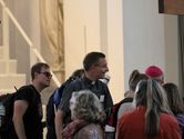 Gerber dankte den Frauen, Kindern und Männern, die mit ihm gepilgert waren, für dieses „starke Zeichen der Solidarität“. Das Weltjugendtagskreuz war von Jugendlichen auf dem Pilgerweg mitgetragen worden; am Ende des Weges trugen es auch der neue Bischof und sein Amtsvorgänger Bischof emeritus Heinz Josef Algermissen. Diözesanadministrator Weihbischof Prof. Dr. Karlheinz Diez, der Gerber und die Pilger im Dom willkommen geheißen hatte, erteilte im Dom den Segen mit der Bonifatiusreliquie. In Vorbereitung auf den großen Tag der Amtseinführung wurde im Dom auch eine Vigil gefeiert.